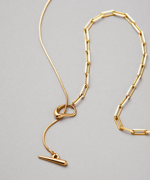 スタイリングに合わせてマルチに使えるネックレス【デザイン・シルエット】華奢でシンプルなミックスチェーンのラリエット。Y字で垂らしても、ぐるっと一連でも、ぐるぐるっと二連でも、洋服に合わせて自在に変形していただけます。上品なチェーンなのでサラッと合わせられるのがポイント。上品ながらもデザイン性があるので、ワンピースからカジュアルスタイルまで大人なこなれ感をプラスしてくれます。【カラー】ゴールド・シルバーの2色展開。※画像の商品はサンプルです。 実際の商品と仕様、加工、サイズが若干異なる場合がございます。