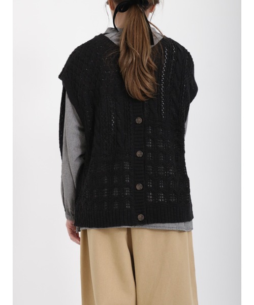 パッチワークのように編み柄を組み合わせたニットベスト。 MIXカラーのスラブ糸でこなれ感のある風合いをプラス。前後どちらでも着用可能な2WAY仕様なのも嬉しいです。 ゆったりめのシルエットなので華奢見せ効果も期待でき、レイヤードコーデにも活躍してくれる1着。 ※商品画像は、撮影環境やお客様のご利用のPC・スマートフォンのモニター環境などにより実物と色味に差異がある場合がございます。