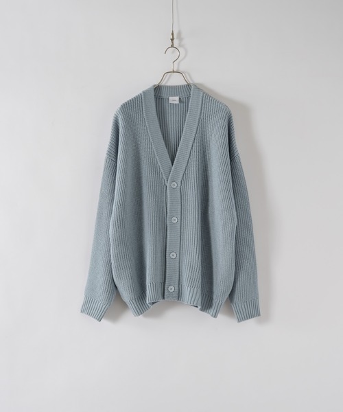 【ミドルゲージリブカーディガン】《素材特性》アクリル100%程よく厚みのあるミドルゲージの素材感。柔らかな質感で、非常に着心地の良いアイテム。季節感も問わず、ラフに着用できる万能なアイテムです。《シルエット》裾部分とアームに膨らみを持たせた、オーバーサイズ仕様。着丈をシャープにすることにより、野暮ったさのない仕様になっております。リブにもゆとりを持たせ、丸みのあるシルエットが特徴的です。《デザインディテール》同色のリブで一体感のあるデザインフロントボタンも大きめの設計にし、アクセントを加えます。春らしいアンニュイなカラーリングも特徴で、コーデの差し色になること間違いなし。アクリル素材ですので、洗濯も可能です。【推奨サイズ】Sサイズ:~168cmMサイズ:169cm~175cmLサイズ:176cm~