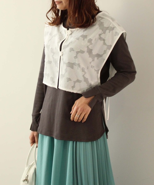 春らしいシアー感のあるフラワー柄ジャガードのビスチェ☆【Design】前後で着れるハーフ丈のビスチェ。脇のリボンで結ぶタイプなので自分の好きな裾周りに調節できます。開きの部分はループ使いでカジュアルながらクラシカルな雰囲気に仕上げました。シアー感のある生地で今シーズンにピッタリなアイテムです。【Fabric】透け感のあるジャガード生地を使用。ボタニカルな花柄が大人可愛い素材です。伸縮性は無く、透け感を楽しんでもらう為、裏地も有りません。【Color】着まわししやすいベーシックな3色展開・クロ(ブラック 黒色)・クリーム(アイボリー 生成り)・オフ(ホワイト 白色)【Coordinate】チュニックとのレイヤードスタイルはカジュアルフェミニンなスタイルに。シャツの上に重ねてもこなれ感のある大人カジュアルなコーデでおススメです。ワンピースと合わせればシーズンライクな華やかなスタイルになります。レイヤードスタイルにおススメな春らしいアイテムです。toucher du brise(トゥシェドブリ-ズ)ガーリーなテイストを取入れて上品で可愛い、ほど良くエッジの効いたアイテムをベースにトレンドをミックスし、大人女性の等身大のスタイルを提案します。《お気に入り登録》でお得な情報がいっぱい・「商品のお気に入り登録」で再入荷通知や、人気アイテムのラスト1点通知、セール通知も受け取ることができます。・「ブランドのお気に入り登録」でレディース新作アイテムや再入荷など、お得な情報を受け取ることができます!