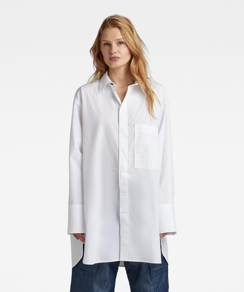 特徴オーバーサイズフィットで仕上げたBF Shirt。バック上部のシームにプリーツが折り込まれています。長い裾を曲線にカット。胸にポケットがひとつ配置されています。長いカフスに2列ボタンが付いているので袖口をタイトに絞ることも可能。ルーズフィットシャツカラー2ボタン留め、長めのカフスデザイン胸にポケットバックシームにプリーツ長めの丈スナップボタンを隠したデザイン 素材・生地MANOR POPLIN独特な仕上げを施すことで僅かに張りのある滑らかな質感を表現した、ポプリン織りのファブリックです。ポプリン織り滑らかな風合いと張りのある手触り100% コットンG-Star RAWとは伝統を大切にしながら、革新を生み出す。1989年創設のG-Star RAWはブランドの哲学である“Just the Product”を貫き通してきました。 デニム業界の最先端を進み、デニムのスタンダードに果敢に挑戦していくことで、デニムブランドを牽引する存在となっています。G-StarのブランドDNAはイノベーションとサステナブルです。未来のファッション界を見据え、私たちが住むこの地球にとってサステナブルな解決策を見出していくことに尽力しています。《お気に入り登録》でお得な情報をゲット。・「商品のお気に入り登録」で再入荷通知や、ラスト通知、セール通知も受け取ることができます。・「ブランドのお気に入り登録」で新商品や再入荷など、お得な情報を受け取ることができます。