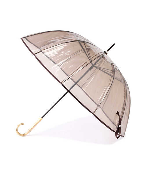 [design] ほんのり色がついている透けすぎない大人っぽい雰囲気が人気のクリアアンブレラ。クリアな本体にバンブーハンドルのコンビネーションがスタイリッシュなデザインです。※ハンドルは天然の竹を使用しているため、若干のひび割れ模様が出ている可能性がございます。 ※モデルの着用画像の場合、光の当たり具合により、実際の色味と異なって見えることがございます。色味は、商品単体の画像をご参照ください。