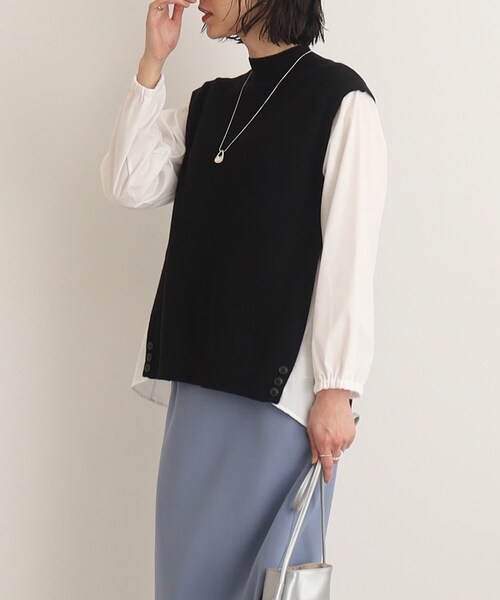 【デザイン】 1枚でスタイリングが決まるニットと布帛のドッキングプルオーバー。 裾についている釦もポイントです。 1枚あると重宝できるアイテムです。 【素材】 伸縮性のあるニット素材と張り感のある布帛素材を使用しています。 ※こちらの商品は少し網目が粗いため、お手持ちのインナーを合わせて頂くのがお勧めです。 モデル情報:身長168cm B76 W58 H86 着用サイズ:00(FREE) 店舗へのお問い合わせ商品番号:C62-16308 ●製品寸法: 00(FREE):着丈69cm B92cm 袖丈53cm 肩幅39cm 備考: