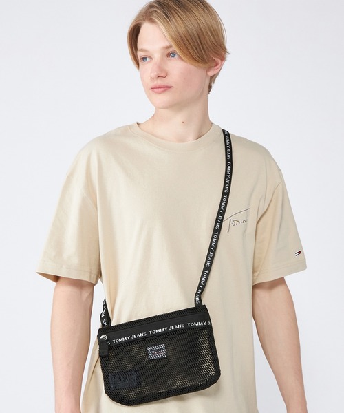 【2023 SPRING】 リピートロゴ入りミニショルダーバッグ <デザイン・シルエット>・中身の見えるメッシュ素材のサコッシュ。 ・ブランドネームをあしらったストラップがポイント。 ・スマホや財布などの日常必需品が充分に収まります。 <ディテール・サイズ> ・上部ファスナー開閉。 ・肩紐と間口はロゴ入りのキャンバス地で設計。 ・長さ調節可能なショルダーストラップで肩掛けや斜め掛けにも対応。 <スタイリング> ・荷物の中身によって雰囲気が変わり飽きの来ない個性が光るアイテム。 ・フェスやアウトドアなど貴重品を身軽に持ち運びたい時にもオススメです。 【TOMMY HILFIGER】 永遠のアメリカンクラシックをベースにモダンなひねりを加えたデザインが人気のトミーヒルフィガー。都会的で洗練されたメンズ・ウィメンズに加え、チルドレン、ゴルフライン、そしてよりカジュアルなデニムラインと豊富なカテゴリーが揃うグローバルブランド。