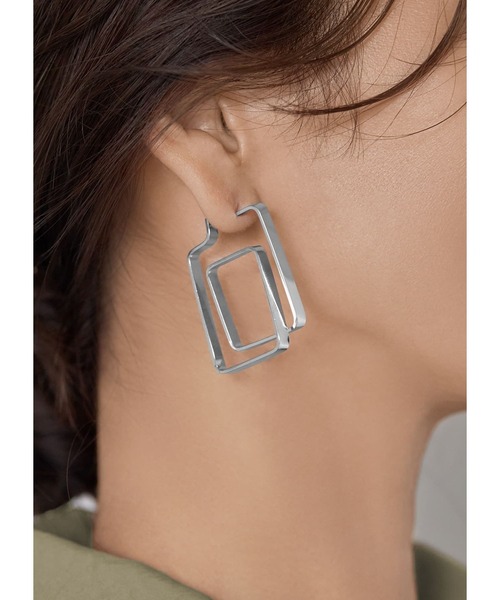一枚の細長い平打ち(※)メタルをスクエア型に曲げた、立体感が楽しいピアス。スクエアを2つ重ねたように見える、サイドから見た時の形がとくにオシャレなデザインです。 こちらのピアスはポスト針と受け金具の形状が個性的で、キャッチは無く、本体の穴にポスト針を通す構造。着けるとき(外すとき)は針の前後のメタル板を持ち、静かに前後左右に少し開いて隙間を作り、元の位置に戻します。 慣れるまでは手間どうかもしれませんが、慣れてしまえば簡単。キャッチの無いスッキリとしたピアス独特のオシャレさを楽しめます。 ※平打ち:金属をフラットな板状に加工したものを呼ぶジュエリー&アクセサリー用語です。全般的にクールな雰囲気が出るのが特徴です。 【ご注意事項】 ピアスを広げる際にあまり力をかけると、破損の原因となりますので『あくまでも静かに・丁寧に』行うようにしてください。 【お手入れについて】 ※ピアスは帰宅したら外し、ハンドソープで手を洗うついでに一緒に軽く洗ってしまうのが◎ 付着した皮脂や汗が落ちて酸化を遅らせ、色味やカラーがキレイに保てます。 ※洗ったあとはティッシュで軽く水気を吸い取り、タオル等の上に置いて自然乾燥させて、乾いたらしまいます。 ※着用しないときはチャック付きポリ袋などに入れて、なるべく空気に触れさせないことで質感の良さが長持ちします。 ※入浴時、スポーツ時、就寝時には外してください。質感が劣化し、破損の原因になります。