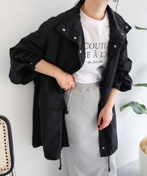 軽量でカジュアルすぎず上品に着こなせる、 スタンドカラーのマウンテンパーカーが入荷しました♪ ほんのり光沢のあるポリエステル素材で、 薄手ながらもハリ感があり、 サラッとシャツ感覚で気軽に羽織れる着心地が◎ ゆるっとしたオーバーサイズシルエット、 ボリュームのある袖でこなれ感のある印象に。 首元を閉じてトレンドのスタンドカラーとしても、 前開けで抜け感のあるビッグカラー風にも着られる♪ 袖口のドットボタン、ウエストのドローで シルエットの変化も楽しめて、コーデの幅が広がります。 軽量で持ち運びもしやすいので、気温の変わりやすい時期に 体温調節できるライトアウターとしておすすめです! ※裏地なし ※撮影時のライティング、ご覧になっているモニター・PC環境により 実際の商品と色味が異なって見える場合がございます。 ご了承の上お買い求め下さい。 素材: ポリエステル100% ≪備考≫ 伸縮性:なし 透け感:なし 生地の厚さ:やや薄手 肌ざわり:さらっとしている その他:シャリッとした張り感あり 生産地:中国 手洗い:可 ドライクリーニング:可 ウェットクリーニング:可