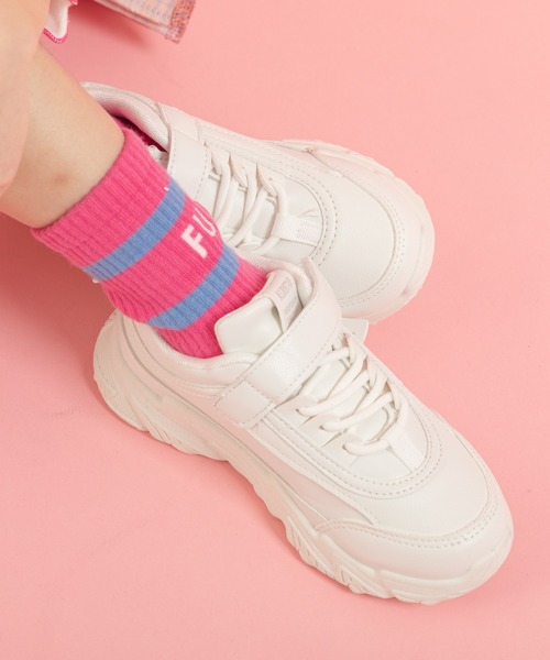 インパクト大のボリュームソールにロゴタグデザインが目を引く今までにないダッドスニーカー。 見た目よりも軽量なソールで足運びが楽にでき疲れにくい仕様になっています。 足首もしっかり支えるホールド感・クッション性のある履き心地! カジュアル、ストリートはもちろん、フェミニンコーデの外しアイテムとして合わせれば、こなれ感を醸し出せます◎ ■サイズ 必ず以下サイズ表をご確認の上ご購入頂きますようよろしくお願い致します。 ※ご購入の目安:お子様の足裏サイズから+1cmから1.5cm程度の内寸 16.5cm(27号) 内寸16.9cm 17.5cm(28号) 内寸17.5cm 18.0cm(29号) 内寸18.1cm 18.5cm(30号) 内寸18.7cm 19.0cm(31号) 内寸19.3cm 19.5cm(32号) 内寸19.9cm 20.5cm(33号) 内寸20.5cm 21.0cm(34号) 内寸21.1cm 21.5cm(35号) 内寸21.7cm ※同じ商品の同カラー・同サイズであっても商品ごとに多少の誤差がございますため、サイズの詳細は目安としてご参照ください。 ★『お気に入り登録』でお得な情報をいち早くGET★ ・「商品のお気に入り登録」で再入荷通知や、ラスト1点の通知、セール通知も受け取ることができます。 ・「ブランドのお気に入り登録」で新商品や再入荷など、お得な情報を受け取ることができます!