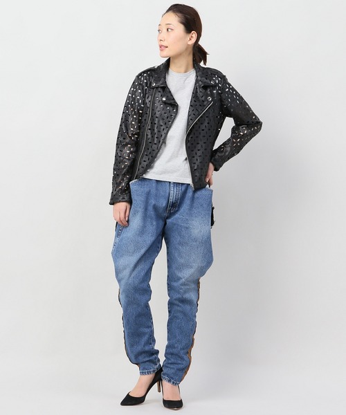 【2018SS】 JOINT WORKS エッジの効いたパンチングデザインが特徴的なライダースブルゾン。クラシックライダースをベースにしながらも都会的なムードが漂う「JOINT WORKS」らしいアイテムにアップデートしています。デイリーなデニムスタイルにとアクセントを効かせた着こなしを楽しんで頂けます。