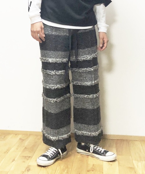 存在感のあるパネルパッチワーク織りの高品質ボーダーニットとライトウェイトで高品質イタリア生産ウールジャージニットのラグジュアリーパンツです。