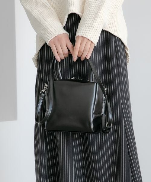 ーーー コロンとしたスクエア型のミニボストンバッグ。 きちんと感のあるフェイクレザーを使用し、幅広いシーンでお使いいただけます。 取り外し可能なストラップ付きで、ショルダーバッグにもなる2WAY仕様です。 ーーー