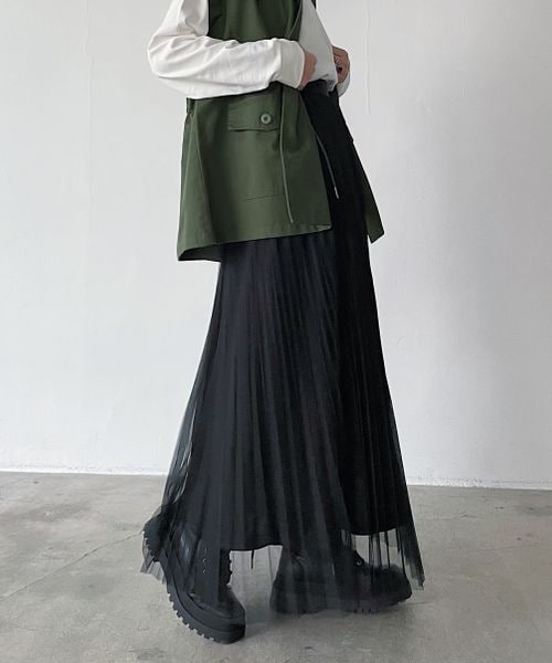 ーーー チュールが軽やかなランダムプリーツスカート 軽やかで柔らかいチュール素材を生かした動きのあるランダムプリーツスカート。 裾に向かってフレアが広がり体のラインを拾いにくく美しいシルエットで作っています。 ウエストは全てゴムなのでストレスフリー! ーーー 落ち感のある軽い素材感でボリュームのあるスウェットやニットともバランス良く着用可能。 オフとチャコールは裏地が微配色になっており、オシャレかつ透けにくい作りに。 どんなトップスともバランスよく使える1枚です。 〈注意事項〉 ・サンプルにて撮影をしておりますので、実際の商品とは素材や仕様・加工・サイズ等が若干異なる場合がございます。 ・モニター・環境等により実際の商品と色味が多少異なって表示される場合がございます。予めご了承をお願いいたします。 ・撮影環境により、光の当たり具合で色味が違って見える場合があります。あらかじめご了承下さい。