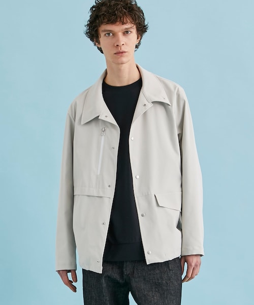〈素材〉・上品な光沢感 あり・重さ 軽い・伸縮性 縦横あり・厚み 普通・イージーケア・手洗い可・エコ素材使用〈表地〉 しなやかな伸縮性とお手入れ簡単なアクティブファブリック〈シルエット/デザイン〉 ・襟を立たせて着れば、スタンドカラーとしても着用可。・腰にシームポケット あり・裾にドローコードがあり、絞れてシルエットの変化を楽しめます。・フロントはドットボタン仕様。