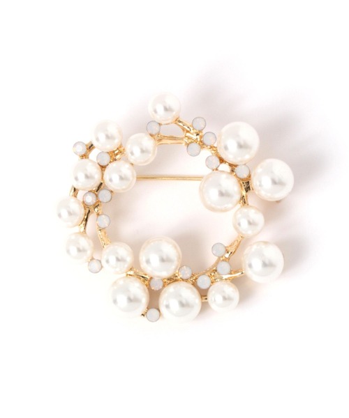 セレモニーやオケージョンシーンにオススメ ーーー パールやクリスタルをちりばめた華やかなブローチ。 リースのようなラウンドデザインで優しい印象。 セレモニーやオケージョンシーンにもぴったりのアイテムです。 ーーー