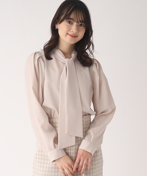 キカパターンアソートのオフィススタイルに最適なブラウス 【素材】 ・落ち感のあるindex定番で使用しているジョーゼット素材を使用。 ・上品な光沢感としなやかさが備わった繊細な表面感。 ・一枚ではもちろん、かさばらない素材なので、アウターインでもOK。オールシーズン活躍します。 ・しわの落ちやすいイージーケアのポリエステル素材で、マシンウォッシャブル。清潔な印象がお手入れらくちんに手に入ります。 ※こちらの商品はやや透け感があるため、インナーの着用をおすすめします。 【デザイン】 ・少し太めに取ったボウタイがクラシカルなブラウス。 ・フロントも比翼仕立てできれい目な印象。 ・肩部分にいれたタックが、一枚で着た時の今年らしいこなれ感をプラスしてくれるポイントです。 ・ラウンドネックがボウタイデザインで気になる首周りのつまり感を和らげ、すっきりとした印象に。 ・丈感を少し長めに取り、タックインした時に、ふんわりと自然にブラウジング出来る様仕上げています。 【カラー】 ・ライトグレー(011)・カーキ&グリーン(020)・ライトブルー(091)の顔映りをよく見せるくすみパステルカラーの無地3色とアイボリーベースにキカパターンのオフホワイト(103)の4色展開です。 こちらの商品は主に春に着用いただける商品です。 モデル情報:身長166cm B80 W58 H83 着用サイズ:38(M) 店舗へのお問い合わせ商品番号:C58-86013 ●製品寸法: 36(S):着丈59cm B90cm 袖丈58cm 肩幅32cm 38(M):着丈60cm B92cm 袖丈59cm 肩幅33cm 40(L):着丈61cm B95cm 袖丈60cm 肩幅33cm 42(LL):着丈62cm B98cm 袖丈62cm 肩幅34cm 備考: