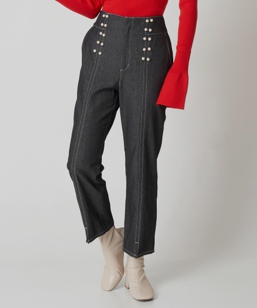 ◆パール釦がアクセント!◆ ストレートシルエットのキレイ目のデニム。 縦の切り替えが足細く長く見せてくれます。 ウエストのパール釦がアクセントになっていて可愛いです! 裾に少しスリットがあるのもポイントです。 後ろゴムで履きやすいです。 …………………… 透け感:なし 厚さ:普通 伸縮性:なし …………………… ≪お気に入り登録機能の使い方≫ ■商品のお気に入り登録(ハートマークをクリック) 再入荷通知や値下げ等、お得なご案内を受けることができます。