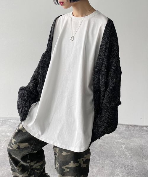 ーーー レイヤードスタイルに万能なロンT ーーー 分厚すぎない素材を使用し、インナーとして着る際にごわつきにくくしています。 裾にはスリットを入れ、ちらっと見えた時にスッキリとしたシルエットに見えるよう長さにもこだわりました。 春先まで着回しの効く、必ず持っておきたいアイテムです! 〈注意事項〉 ・サンプルにて撮影をしておりますので、実際の商品とは素材や仕様・加工・サイズ等が若干異なる場合がございます。 ・モニター・環境等により実際の商品と色味が多少異なって表示される場合がございます。予めご了承をお願いいたします。 ・撮影環境により、光の当たり具合で色味が違って見える場合があります。あらかじめご了承下さい。