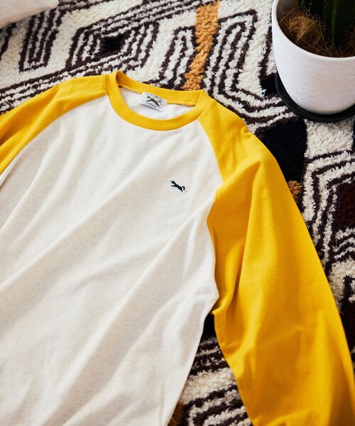 2023 Spring & Summer item TOWN CRAFT×FREAK'S STORE 別注 ラグラン9分袖ロングスリーブTシャツ ●大人気のTOWN CRAFT別注シリーズに新作のラグランスリーブTシャツが登場 ●レトロな配色とシンプルなデザインのバランスが癖になる一着 ●程よいリラックス感のあるサイジングがポイント! ●胸元にはアクセントになるワンポイントロゴを刺繍 ●袖丈は9分袖で袖幅はゆったりめの設計で程よく溜まるサイジングに おすすめコーディネート レトロな配色がお洒落なラグランスリーブTシャツ。 デザインがシンプルなのでカジュアルからストリートまで幅広い着こなしが可能です。 ボトムはアメカジ定番のデニムやカーゴパンツはもちろんの事、ワイドパンツやスラックスとのスタイリングもおすすめの1着となっています。 ※こちらの商品は、弊社管理上のカラーを表記しております為、タグのカラー表記と異なる記載となっております。 【サイト表記:タグ表記】 ・ブラック:ブラック ・イエロー:イエロー ・オリーブ:グリーン ・ネイビー:ネイビー ※掲載画像の商品の色味は、屋外や屋内の光の照射や角度により実物と色味が異なる場合がございます。また表示のサイズ感と実物は若干異なる場合もございますので、予めご了承ください。 ※着用、お取り扱いの際は、商品についている品質表示とアテンションタグを必ずご確認下さい。