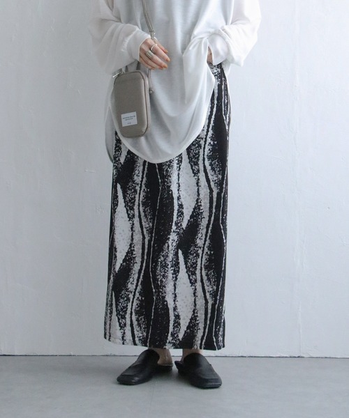トレンド感あるニュアンス柄が可愛い一枚。 モード、きれいめ、カジュアルも◎ パッと目を惹く柄で、合わせ方次第でどんなスタイルもマッチする万能スカートです。 【Detail】 レディライクなシルエット。 柔らかく肌触りの良い生地を使用し、バックスリットとウエストゴムでストレスフリーに履きこなせます。 【Coordinate】 春先から秋口まで長く着まわせるアイテムです。 フェミニンな雰囲気は勿論、あえてカジュアルなトップスと合わせても◎ 【Size】 こちらの商品はお客さまの身長に合わせて丈がお選びいただけます。 身長が低め~平均の方はMサイズ、身長が高めの方や、長めの丈で着用したい方はTM(トールM)サイズがおすすめです。 同素材のワンピース 品番:73410179もオススメです! -ATTENTION- ※撮影環境により多少実際のカラーと異なる場合がございます。