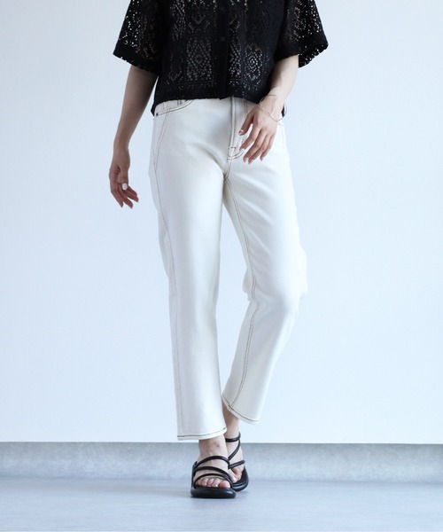 新色ワンウオッシュ登場!ストレッチを効かせた、楽に穿けて綺麗見えするテーパードデニム◇Point◇柔らかくストレッチの効いた、らくちんデニム。美脚見えするテーパードシルエットが〇昨年のクロップドより、サイズは少し大きく仕上げてます◇Material◇ポリウレタンが2%入って、ストレッチの効いた生地感。環境に配慮した素材、オーガニックコットンを30%使用※立体感を出すために皺が入る様に加工をしています。 洗ったり・着用していくと、薄れてきます。◇Coordinate◇テーパードシルエットのデニムは、カジュアル目・かっちり目など、どんなスタイルにもマッチします◎Tシャツやシャツ、ブラウスをタックインする着こなしがおすすめです。※お届け時には皴の加工が強く入っている場合がございます。※1本1本ハンドメイドで加工を施しているため個体差があります。※照明や天候により実際の色味と異なって見える場合がございます。ご了承くださいませ。