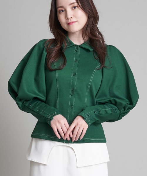 ◆配色ステッチと袖のシルエットがポイント◆ ボリューム感のあるパフスリーブが存在感抜群! 配色ステッチがポイントになっていて、縦ラインが内側にカーブしているので、 スタイルアップ効果も期待できます。 着丈は長すぎず、短すぎない作りになっているので、 出したまま着てもバランス良くお召いただけます。 …………………… 透け感:なし 厚さ:普通 伸縮性:普通 洗濯方法:家庭洗濯可 …………………… ≪お気に入り登録機能の使い方≫ ■商品のお気に入り登録(ハートマークをクリック) 再入荷通知や値下げ等、お得なご案内を受けることができます。