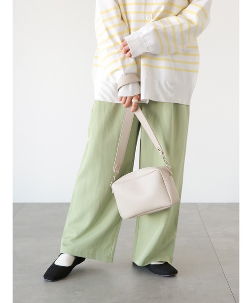 2種類のストラップで表情を変えられるバッグ。2本使いで片方垂らすのがおすすめ!マチがしっかりしているので、見た目以上に入れられるのが魅力ポイント★無地のショルダーはボディバッグのように短めに斜め掛け、ラインテープはコーディネイトのポイントに、それぞれ楽しめます。内側についたポケットで、小物類を整理できるのもポイント◎※商品画像は、撮影環境やお客様のご利用のPC・スマートフォンのモニター環境などにより実物と色味に差異がある場合がございます。【その他採寸】F 全長:[ショルダー]135cm
