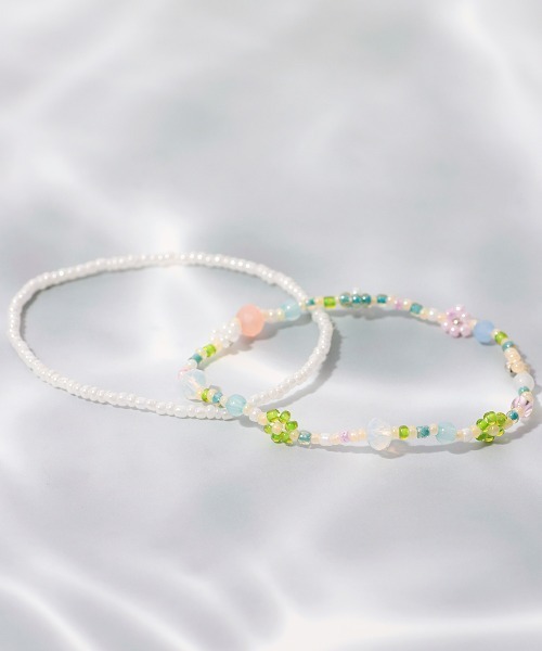 小さなフラワーとキラキラビーズのブレスレットセット キュートで小ぶりなお花と数種類のビーズを組み合わせたポップなデザイン。 シンプルな単色ビーズと2本セットになっているので、気分に合わせて単体で付けたり2連で付けることもできます。 ゴム仕様になっているので着脱が簡単。 付けるだけで手元が華やかになり、コーデのアクセントとしても彩をプラスしてくれます。 カラーはホワイト×パステル(その他1)、ブルー×ミックス(その他2)、ブラウン×ミックス(その他3)の3色からお選びください。 【TITICACAのお買い物をお楽しみいただくために!】 ▼商品のお気に入り登録 完売カラーの再入荷通知や、ラスト1点の通知、セールの通知も受け取ることができます。 ▼ブランドのお気に入り登録 新商品や再入荷など、いち早くブランドのお得な情報を受け取ることができます!