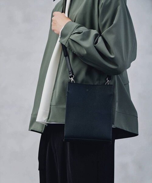 レザー調素材のスクエア型ショルダーバッグ。ミニマルなボックスバッグはモードスタイルにぴったりのアイテム。ショルダーストラップ部分を型押しにしてポイントに。財布やスマホなど最低限の荷物で出かける際に便利なバッグです。・マグネット式の開口部・ショルダーストラップは取り外し可能・ポケット数:内側×2(ファスナー付×1) 外側ファスナー付×1■ブラック系バリエーション違い019/ブラック:スムース119/ブラック系:サフィアーノ型押し219/ブラック系1:エンボスモノグラム419/ブラック系3:モノグラムブラック519/ブラック系4:サフィアーノ型押し(表裏ブラック・側面ネイビー)619/ブラック系5:サフィアーノ型押し(表裏ブラック・側面ベージュ)719/ブラック系6:金具がゴールド819/ブラック系7:本体・ショルダーベルトともにスムース919/ブラック系8:シボ型押し- BRAND CONCEPT -時代を超えて支持されるトラディショナルなアイテムをベースに、アソビ心とストリートの自由な発想を取り入れ、日本独自のミックススタイルを提案します。【気になる商品はお気に入り登録をおススメ】▼商品のお気に入り登録完売しているカラーの再入荷通知や、ラスト1点、セールの通知をお知らせいたします。▼ブランドのお気に入り登録新商品や再入荷など、いち早くブランドの情報を受け取ることができます。店舗へのお問い合わせ商品番号:170-06335●製品寸法:00:高さ22cm 幅(上部)17cm 幅(下部)16cm マチ4cm ショルダー対応サイズ93~116cm備考:重量:約350g
