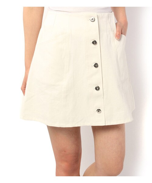アメリカンカジュアルなガーリースタイルを印象付ける、フロントボタンデザインのデニムスカート。ミニ丈の台形シルエットが小尻&脚長効果にひと役買ってくれます。ジャストフィットなはき心地を叶えるバックゴム仕様を活かし、トップスインで今年顔にコーディネートして。