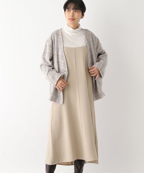 ーーー ロングシーズン活躍してくれるキャミワンピースは、 ハイウエストのデザインが新鮮な1枚 ーーー 気候に応じてインナーや羽織りなどで調整ができるので、 季節問わずに着回しやすい優秀アイテムです。 着丈は後ろの紐で調整でき、肩紐はダブル仕様でが安定感もあるのもポイント。 すっきりめのフレアシルエットなので、厚手のアウターやニットでもスマートに着こなせます。