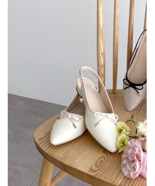 リボンがレディライクなアクセントになるシューズ。 バックストラップで安定感があり、履き心地の良さを実現します。 つま先のアーモンドトゥのようなデザインがきれいめな印象をプラス◎ スカートやワンピースコーデに合わせたスタイリングがおすすめです。 ※商品画像は、撮影環境やお客様のご利用のPC・スマートフォンのモニター環境などにより実物と色味に差異がある場合がございます。