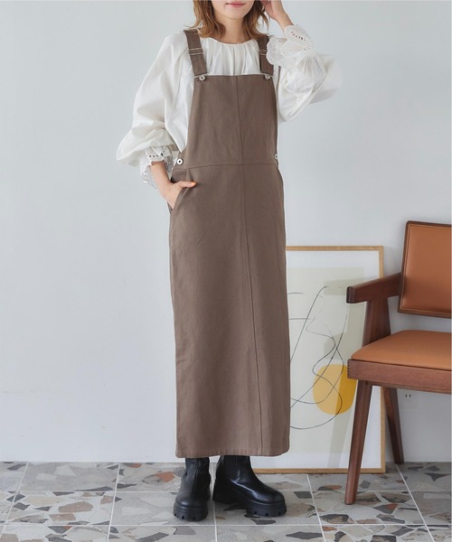 ・Iラインシルエットがスタイルアップを叶えるジャンパースカート。・余計なデザインを省き、女性らしく着やすいデザインに仕上げました。・肩紐は調整可能で便利。・ポケット付きで機能性も抜群。・綿ツイル素材を使用した大人カジュアルに着こなせる1枚。※当商品は機械による生産の過程上、どうしても"生地を織る際の糸の継ぎ目"や多少の"ほつれ"、他繊維の"混紡"、また、形やサイズや柄に多少の"誤差"が生じる場合がございます。※サイズは、実寸サイズを測っているため多少誤差がでる場合があります。製造工程の関係上、各採寸箇所実寸(平置き)より【約-3cm~+3cm】程度は誤差の許容範囲とさせて頂いておりますので、予めご了承くださいませ。※メーカーより密封状態で入庫し、検品時に再度袋詰めを行っておりますが、素材により染料等の臭いが強い場合がございます。※発送上の状態によって商品がシワになる場合がございます。※商品により色落ち・色移りがある場合がございますので、品質表示をご確認の上、お取り扱いにご注意くださいませ。【生地】厚みのあるしっかりした生地【伸縮性】斜め方向に多少あり【透け感】なし【裏地】なし