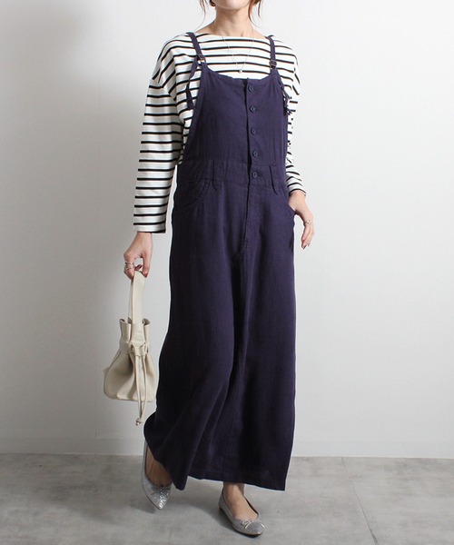 ◆カジュアルで可愛い人気のサロペットデザインスカート◆ 《ディテール》 コーデの主役に使えるサロペットスカート。存在感のあるマキシ丈は肩のストラップで調節可能です◎ややゆったりとしたシルエットが大人っぽくて抜け感のある着こなしに。合わせるお洋服で雰囲気が変わる、着回し力抜群のアイテムです。 《ファブリック》 程よく薄手でさらりとした、春夏にぴったりな生地感です。リネンのナチュラルな風合いが魅力的。 《スタイリング》 Tシャツやブラウスなど、お手持ちのお洋服と様々な組み合わせをお楽しみいただけます。しっかりと丈感があるのでスニーカーやぺたんこ靴とも相性抜群です。 スカート ワンピース ジャンスカ オーバーオール 春 夏