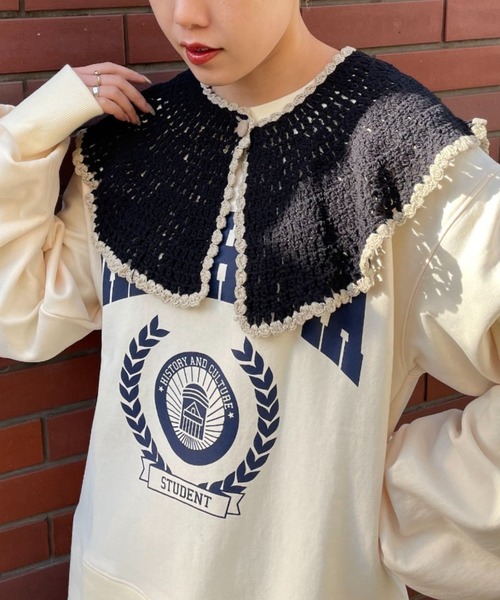 いつものコーディネートをアップデート!バイカラーの付け襟で女性らしいこなれ感を演出▼ポイント・様々なコーディネートオールシーズン着用可能・コットン素材を使用し不快感ナシの付け心地・かぎ針編みが抜け感、優しい印象を演出・大きめの襟で小顔効果も叶うアイテム・掛けボタンで楽に着脱可能※この製品はインドで生産されたものです。手作業による温かみのある風合いをお楽しみください。 多少のデザインのずれは商品の特徴のひとつです。予めご了承ください。◇サイズ感:普通◇着心地:★★★★☆▼スタッフレビュー ※骨格は自己診断になります。【158cm / size:F / 骨格:ナチュラル】バストラインまでの丈感、ちょうど肩が隠れる程の大きさです。優しい肌当たりで快適な付け心地です。デニムにカットソーのシンプルでカジュアルなコーディネートがおすすめ!ジャケットの上から付けても◎------------------------------------------------------透け感:あり伸縮性:あり裏地:なし光沢:なし------------------------------------------------------家庭洗濯:40℃限度/手洗い可漂白:不可タンブル乾燥:不可アイロン:中温150℃まで可クリーニング:石油系溶剤による弱いドライクリーニング可・非常に弱い処理によるウェットクリーニング可------------------------------------------------------付け襟 / かぎ針編み / クロシェ編み / カジュアル / 抜け感 / レトロ / トレンド / 古着ライク / 着回し / レイヤード / フリル / ラウンドネック / ニット------------------------------------------------------※着用、お取り扱いの際は、商品についている品質表示とアテンションタグを必ずご確認下さい。※画像の商品はサンプルです。実際の商品と仕様、加工、サイズが若干異なる場合がございます。 ※照明の関係により、実際よりもやや明るく見える場合がございます。またパソコンなどの環境により、若干製品と画像のカラーが異なる場合もございます。予めご了承ください。【お買いものをよりお楽しみいただく為に!!】▼商品のお気に入り登録(ハートマークをクリック)お気に入りアイテムの完売カラーの再入荷通知や、ラスト1点の通知、セールの通知も受け取ることができます。▼ブランドのお気に入り登録新商品や再入荷など、クーポン配布などのお得な情報を受け取ることができます。