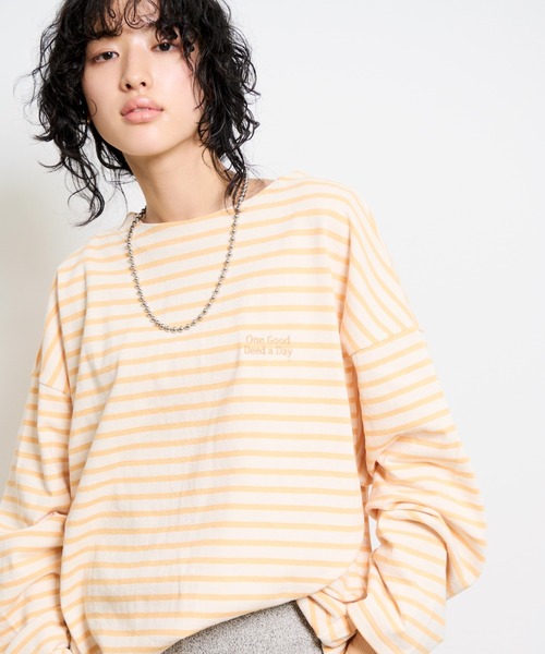 -- 2023 THE YOn Spring Collection -- 定番のボーダーTはトレンド感のあるシルエットでアップデート 【Design】 カジュアルアイテムの定番ボーダーTシャツは、オーバーサイズでトレンド感を意識。ボックスシルエットの身頃に、あえて丸みのあるスリットを施した遊び心を感じる一着。胸元のロゴ刺繍はボーダーと同色を選びさりげないポイントに。ややくすみがかったカラーで柔らかさのある新鮮なボーダーに仕上げました。 【Styling Point】 あえてインせずにオーバーサイズをいかした着こなしがおすすめ。スカートを合わせて女性らしさをプラスすればバランスの取れたコーディネートに。 -------------------- 裏地:なし 光沢感:なし 透け感:なし 伸縮性:あり 生地の厚さ:普通 -------------------- 【お買い物をお楽しみいただく為に】 ▼お気に入り登録をオススメ致します。 『♡』をクリックして下さい。 ・《商品のお気に入り登録》で再入荷通知や、ラスト1点の通知、セールの際の通知も受け取ることができます。 ・《ブランドのお気に入り登録》で新作商品や再入荷など、お得な情報を受け取ることができます。 【ATTENTION】 ※画像の商品はサンプルです。 実際の商品と色味、仕様、加工、サイズ、素材等が若干異なる場合がございます。 ※撮影場所やお使いのモニター環境により若干お色味が異なる場合がございます。 ※製品によっては染料の特性上、湿った状態や汗をかいた状態での長時間の放置、または摩擦により、他のものへ色移りする恐れがありますので、着用時にはご注意下さい。 ※お洗濯は洗濯ネットを使用し、他のものとの混合洗いはお避け下さい。色落ちや色移りの原因となります。 タンブラー乾燥はお避け下さい。 ※風通しがよく、湿気の少ない日の当たらない場所で保管して下さい。 ※また製品加工上、お手元に届く際に匂いが生じる場合がありますが、 ご使用を続けていく事により匂いは軽減されます。