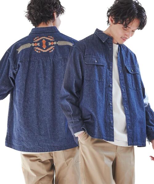 さりげないトライバル模様がワンポイントのワークシャツ同シリーズのご用意もございます。ベスト 品番:75356320007カーディガン 品番:75376320019■デザイン後ろ肩回りにトライバル(部族的な)柄を刺繍デザインで施したワークシャツです。大きすぎず小さすぎない程よいゆとりのサイズ感になっています。フロントはダブルポケット仕様になっており、裾に軽めのスリットを入れているので、程よい抜け感もポイントです。■素材コットンツイルの程よい生地の厚みの為、通年着用にもオススメです。ネイビーはデニム素材になっています。■スタイリングベーシックなカラーなのでコーディネートしやすいアイテムです。チノパンツやデニム合わせでのアメカジスタイルにはもちろん、タック入りのスラックスなどの落ち感のあるキレイ目スタイルにもオススメです。また、パーカーやスウェットの羽織り(シャウター)としての着回しも様になります。透け感:なし生地の厚さ:普通光沢感:なし裏地:なし家庭洗濯:可能(ネット使用)【注意点】※撮影商品はサンプルの為、実際の仕様と異なる場合がございます。※画像の商品は光の照射や角度、お使いのモニター環境により、実物と色味が異なる場合がございます。スタジオ物撮りの画像が実物の色味に一番近くなっております。※予約商品の場合、お届け予定はあくまでも目安となります。生産の都合上、お届け時期が前後したり実店舗入荷時期とずれる場合がございますので、あらかじめご了承ください。品名:トライバルシシュウシャツ 品番:7510-632-0197