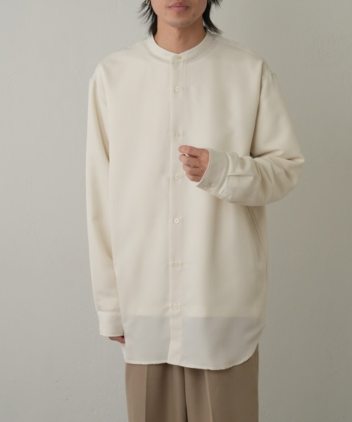 【清潔感のある印象になるバンドカラーシャツ】 メンズでは珍しい、ドレープ感が演出できるアイテムとなっております。 品のある微光沢が特徴のバンドカラーシャツです。 1枚でも羽織としても存在感抜群のシャツになっています。 【商品ポイント】 ・首元がスッキリ見え、清潔感のある印象に ・ドレープ感でキレイ見えする1枚 ・柔らかく滑らかな生地感が特徴 ・春らしいカラー展開 ・同素材のパンツとセットアップで着用可能 【SET UPアイテム】 ・CMA2031204A0003 ドレープポリ長袖シャツ ・CMA2031204A0004 ドレープポリバンドカラー長袖シャツ ・CMA2031202A0004 ドレープポリシェフパンツ ---------------------------------------------------- ■商品特徴 洗濯方法:洗濯機洗い可(弱) 裏地:なし 透け感:なし 伸縮性:ややあり 光沢感:ややあり 生地の厚さ:普通 ---------------------------------------------------- ■素材 ポリエステル100% ---------------------------------------------------- ※着用、お取り扱いの際は、商品についている品質表示とアテンションタグを必ずご確認下さい。 ※商品タグに記載されている商品名がWEBでの表記名と異なる場合があります。 ※実際の商品と仕様、加工、サイズが若干異なる場合がございます。 ※照明の関係により、実際よりもやや明るく見える場合がございます。 またパソコンなどの環境により、若干製品と画像のカラーが異なる場合もございます。予めご了承くださいませ。 【お気に入り登録】してお得な情報をCHECK!! ・「商品のお気に入り登録」で再入荷通知や、ラストの通知、セール通知も受け取ることができます。 ・「ブランドのお気に入り登録」で新商品や再入荷など、お得な情報を受け取ることができます。