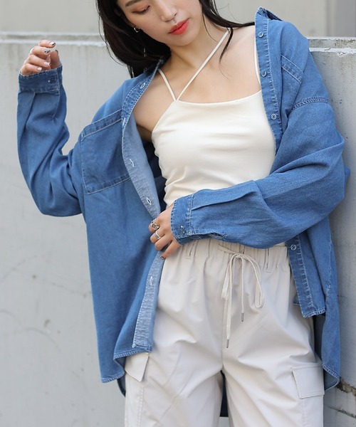 【落ち感と光沢が特徴のきれいめデニムシャツ】 トレンド感のあるオーバーサイズシルエットに仕上げた1枚。 落ち感と光沢が特徴のテンセルデニムを使用しているので、女性らしい雰囲気を演出してくれます。 たっぷりの身幅と腰回りまですっぽりと隠れる丈感で、体型カバーも叶います。 【商品ポイント】 ・たっぷりの身幅と腰回りまですっぽりと隠れるビッグシルエット ・ほどよい落ち感と光沢が女性らしい印象に ・ダブルポケットがアクセントに ・動きのある前後差デザイン 【テンセルデニムシリーズ】・CWA1031104A0015 テンセルデニムダブルポケット長袖シャツ ・CWA1031204A0011 テンセルデニムフレアスリーブブラウス ・CWA1031201A0003 テンセルデニムセミフレアスカート ・CWA1031209A0002 テンセルデニムキャミワンピース ---------------------------------------------------- ■商品特徴 洗濯方法:洗濯機洗い可(弱) 裏地:なし 透け感:なし 伸縮性:なし 光沢感:ややあり 生地の厚さ:薄め ---------------------------------------------------- ■素材 再生繊維100% ---------------------------------------------------- ※着用、お取り扱いの際は、商品についている品質表示とアテンションタグを必ずご確認下さい。 ※商品タグに記載されている商品名がWEBでの表記名と異なる場合があります。 ※実際の商品と仕様、加工、サイズが若干異なる場合がございます。 ※照明の関係により、実際よりもやや明るく見える場合がございます。 またパソコンなどの環境により、若干製品と画像のカラーが異なる場合もございます。予めご了承くださいませ。 【お気に入り登録】してお得な情報をCHECK!! ・「商品のお気に入り登録」で再入荷通知や、ラストの通知、セール通知も受け取ることができます。 ・「ブランドのお気に入り登録」で新商品や再入荷など、お得な情報を受け取ることができます。