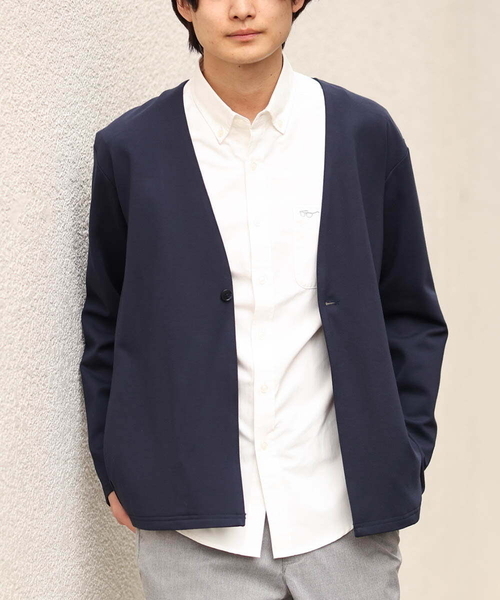 ◆「リラックスジャケット」 デイリーユースに着用しやすいきれいめ見えノーカラージャケット。◆ 【デザイン】 きれいめ見えするジャージー素材を使用したノーカラージャケット。 シームポケットにすることでスッキリとしたミニマルなデザインにしています。 一つボタン仕様のため、閉じた時のエリのおさまりがきれいに見えるのがポイントです。 ビジカジ・テレワーク・お出掛けなど、少しきれいめなスタイルにしたい時に大活躍するジャケットです。 【素材】 2WAYストレッチの効いた、なめらかで表面感がきれいな上品見えするジャージー素材を使用しているため、ストレスなくきれいめスタイルを楽しめます。 ご自宅で気軽に洗濯機洗いができるためデイリーユースに着用できるのも嬉しいポイントです。 【スタイリング】 シャツを合わせてビジカジスタイルや無地やボーダーなどのクルーネックTシャツとのカジュアルスタイルも大人っぽくハマります。 ボトムはワイドパンツ合わせや、細めのスラックスとの相性が良くおすすめです。 ---------------- 透け感:なし 裏地:なし 伸縮性:あり 光沢感:なし 生地の厚さ:普通 ---------------- ≪お気に入り登録機能の使い方≫ ■商品のお気に入り登録(ハートマークをクリック) 再入荷通知や値下げ等、お得なご案内を受けることができます。 ---------------- ※S/044サイズ、XXL/052サイズはWEB限定販売です。 XL/050サイズはWEBおよび一部店舗限定販売です。 ※お使いの液晶環境により、色味が多少異なる場合がございます。予めご了承ください。 ※サンプルにて撮影しておりますため、お届けの商品と仕様が若干異なる場合がございます。予めご了承ください。