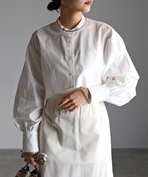 ブロード クロップド フレアブラウス トレンドのクロップド丈のブラウスが登場! いつものコーディネートにプラスするだけで一気にトレンド感がUP !! 一見難しそうなアイテムに見えるかもしれませんが、釦を開けて羽織り としても着ていただけるので、着回ししやすい万能アイテムです。 【素材感】 綿素材でさらっとした肌触りで、薄手ながら透け感の少ない素材です。 ********************** 裏地 なし 透け感 なし 伸縮性 なし 光沢 なし 洗濯方法 洗濯機可、ドライクリーニング可 ※着用、お取り扱いの際は商品についておりますアテンションタグ、 洗濯ネームを必ずご確認ください。 ********************** 【スタイリング】 クロップド丈のトップスは、ハイウエストのボトムと合わせるとスタイルアップ して見えるので相性抜群です。インナーには、タンクトップやキャミと合わ せるのはもちろん、シアータートルなどをレイヤードするのもおすすめです。 キャミワンピースなどの上に羽織りとしても着ていただけます。 #クロップドブラウス #クロップド丈 #ショート丈 #フレア #ボリューム袖 【Information】 ■商品のお気に入り登録■ お好きなカラーをお気に入り登録していただくと、 再入荷やラスト1点、プライスダウンの通知も受け取ることができます。 ■ブランドのお気に入り登録■ 新作や再入荷情報など、いち早くお得な情報を受け取ることができます。 ※撮影のライティングやご覧のモニター環境により、画像の色味と多少異なる場合がございます。 r.(アールドット) 今を感じるベーシックカジュアルをベースに トレンドを取り入れながら自分スタイルを作ることを提案します。 instagramアカウント → r._____official