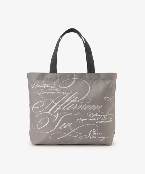 デザイナー&カリグラファーのヴェロニカ・ハリムさんがデザインしたロゴバッグです。 Afternoon Teaのロゴが美しく描かれています。大きさはペットボトル1Lが縦にも横にもすっきり収まるSサイズ。A4サイズも入るため、ノートや資料を持ち運ぶのにもぴったりです。自立するくらいのマチ幅を備えた、豊富な容量が使いやすいポイント。さらに表片側にスリットポケットを付けました。自転車のカギなどのちょっとしたものを入れるのに便利です。ICカードを入れておけばバッグを開けずにタッチできます。上部にはファスナー付きで間口が大きく開くので、中身がみやすいのも特徴です。他にもSS・M・Lサイズをご用意しました。 *1点ごとに柄の出方が違うことがあります。 *ブランドタグのカラーにつきまして、「アイボリー」と「グリーン」の2種類ございます。商品画像とカラーに違いがある場合がございますので、予めご了承ください。 Calligraphy Artist | ヴェロニカ・ハリム インドネシア在住のカリグラフィー・アーティスト。手書き文字の芸術として知られるカリグラフィーを独自の解釈で表現し、注目を集める。その作風は繊細で、優美な装飾を綾なし、軽やかな色彩を纏う。調和のとれた美しい作品は、ウエディング業界をはじめ、多方面に新風をもたらし、人々を魅了している。上質でクラシックな趣も、軽快でモダンなタッチも、卓越した美意識のもとに昇華し、時代を超えて受け継がれる美しさを湛えている。 長きに渡りさまざまな国際的ブランドのクライアントと仕事を共にし、千変万化のクリエイティブ業界において、傑出したカリグラファーとしてゆるぎない存在となっている。 縦26.5cm/横39cm/マチ10cm/持ち手39cm
