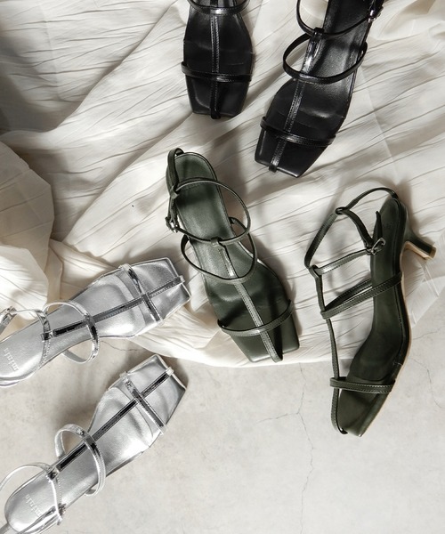 [ SS2023 / minia ] トレンド継続中の華奢ストラップサンダル スクエアトゥと細ヒールでかっこよモードな印象に 細めのストラップで女度を引き上げてくれるサンダルは 引き続きトレンドのど真ん中。 今っぽさを取り入れられる上、 華奢足効果があるからこの夏の主力サンダルに。 リゾートチックなフレア/マキシスカートはもちろん デニムやきれいめパンツとも相性がよく 幅広いスタイリングで大活躍。 ソックス合わせも楽しめるので 春先から秋口までロングシーズン履き回せます。 毎日コーデを考えるのが楽しくなるおすすめサンダルです。 ----------------- ・ブラック ・アイボリー ・ブラウン ・カーキ ・シルバー ----------------- ●スペック(M) ・ヒール高さ…約6cm ・片足重量…約170g ・中敷下全体に低反発スポンジを採用。 ・ストラップ(全長約29cm)はS字フックで着脱。 ・ベルト穴は3つで長さ調節可能。 ----------------- ●サイズ目安 ・Sサイズ…22.0~22.5cm程度 ・Mサイズ…23.0~23.5cm程度 ・Lサイズ…24.0~24.5cm程度 ・LLサイズ…25.0cm程度 ----------------- ●サイズ詳細(mm)( S / M / L / LL ) 【甲周り(底面+甲一周)】 21.5 / 21.8 / 22.5 / 22.8 【足幅(底面)】 8.0 / 8.1 / 8.3 / 8.4 ----------------- ●サイズ感 標準的。 < 足幅 > 狭い □□■□□ 広い < やわらかさ > 柔らかい □□■□□ 硬い ----------------- ●スタッフが素足でMサイズを試着してみました 【23.0cm 普通足 普段Mサイズ】 幅・甲・足長は締めつけ感がなく、ほどよいゆとりあり。 ストラップを一番短く調整して安定した履き心地でした。 【23.5cm 幅広甲高 普段MかLサイズ】 ベルト穴を一番外に調節して、ぴったりのサイズ感。 薄手靴下なら履けそうなのでソックス合わせも楽しめます。 ⇒幅狭も普通足も幅広甲高もいつものサイズを選びました。 ----------------- minia/ミニア いつものコーデにプラスするだけでトレンド感がUPするようなアイテムを提案。結婚式やパーティ・二次会などオケージョンシーンや通勤・オフィスカジュアルでも使えるシンプル上品なアイテムから、普段のおでかけ・通学でデイリーに使えるカジュアルな定番アイテムまで幅広くラインナップ。 靴・バッグをはじめ、イヤリング・ピアス・ネックレス・ヘアゴムなどのアクセサリー/ヘアアクセサリーなど、韓国ファッションで人気のアクセ・雑貨も取り扱っています。プレゼント/贈り物/お返しにもぴったり。 試しやすいプチプライス~素材や機能性にこだわったアイテムもご用意。また、靴箱に再生紙を使用するなど環境に配慮したサステナブルなものづくりに取り組んでいます。姉妹ブランドに『alala』『Una gardenia』『Hercheek』。 ※お使いのモニターや閲覧環境により、実際の色味と違って見える場合がございます。 ※生産時期により僅少なサイズ感のブレ・色ブレが生じる場合がございます。生産工程上やむを得ないことであり不良ではございません。予めご了承くださいませ。 ※素材の特性上、色移行が生じる場合がございます。特に汗や雨で濡れた場合、淡い色の靴下・ストッキングや小物・衣類などへの色移行に十分ご注意ください。 ※水に濡れた場合はすぐに乾拭きして風通しの良い場所で日陰干してください。市販のクリーナー・洗剤をご使用の場合は取り扱いにご注意ください。
