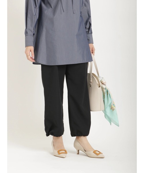 フロントに施されたタックがスタイリングに立体感をプラスする裾ドロストパンツ。 ストンとしたシルエットで脚のラインを適度にカバーしてくれます。 合わせるトップス次第で印象の変化を楽しめるのもポイント◎ シンプルなルックスで着まわしやすく、ワードローブに揃えておきたいアイテムです。 ※商品画像は、撮影環境やお客様のご利用のPC・スマートフォンのモニター環境などにより実物と色味に差異がある場合がございます。 ★《お気に入り登録》でお得な情報をGET★ ① 商品ページ内のハートマークをクリック! ② 以下通知が受け取れます! 「再入荷」「ラスト1点」「特別セール」etc.. \ブランド、ショップのお気に入りも是非!/