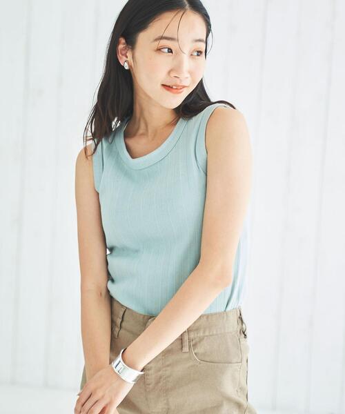 昨年春夏に好評だったハリヌキリブタンクトップに新色追加しての展開インナーのバリエーションとしても揃えておきたい1枚■デザイン程よいフィット感で、インナーとしてもおすすめのタンクトップ。太めのストライプのような地柄になっているので、着やせ効果も狙える、キレイ見えの一枚です。ショルダーにも幅を持たせた安心シルエットで提案します。■素材ハリヌキで入れたタテガラがアクセントになったコットン生地を使用。ほんのり伸びがあり着心地◎です。■スタイリング一枚はもちろん、トレンドのカーディガンのインにも◎。透け感のあるTシャツとのレイヤードアイテムとしても使える万能さで一枚持っておくと便利です。透け感:なし生地の厚さ:普通光沢感:なし裏地:なし家庭洗濯:可能(ネット使用)【注意点】※撮影商品はサンプルの為、実際の仕様と異なる場合がございます。※画像の商品は光の照射や角度、お使いのモニター環境により、実物と色味が異なる場合がございます。スタジオ物撮りの画像が実物の色味に一番近くなっております。※予約商品の場合、お届け予定はあくまでも目安となります。生産の都合上、お届け時期が前後したり実店舗入荷時期とずれる場合がございますので、あらかじめご了承ください。品名:ハリヌキリブタンク 品番:7625-637-0323
