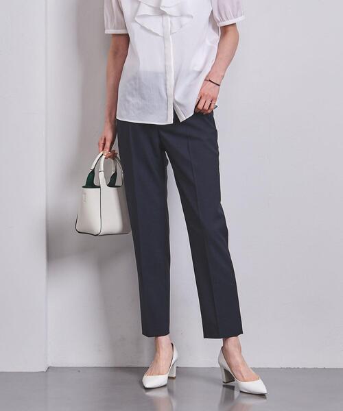 ビジネスやセレモニーシーンに活躍するスリムシルエットのパンツ ■デザイン ノータックで裾に向けて細身になるテーパードシルエット。 足首がややのぞく9分丈設定、センタープレスでレッグラインをきれいにみせてくれます。 ■素材 イタリアCANONICO社のSuper原料の細番手ウールのシャンブレートロ(平組織)。 トップ染で全体にニュアンスのある優しい色合いがおすすめ。 しなやかなタッチと光沢が上質感のある素材です。 ■コーディネート ブラウスやハイゲージニットとの合わせがおすすめです。 ビジネスやお出かけに活用できるパンツは、同素材のジャケットと合わせてセットアップでの着用が可能です。 ※ 同素材のジャケット、ボトムのご用意もございます。 品名:CANONICO ノーラペル ジャケット 品番:15222685143 品名:CANONICO テーラード ジャケット 品番:15222095142 品名:CANONICO タイトスカート 品番:15242025143 ============================ 裏地:前部分のみ膝裏まであり 透け感:なし 伸縮:なし 光沢感:なし ケア方法:ドライクリーニング 着用推奨期間:夏以外、3シーズン ============================ 【注意事項】 ※商品を使用前に、タグ等に記載されている「取り扱い上の注意書き」、「洗濯表示」を必ずご確認ください。 ※商品画像は、光の当たり具合やパソコンなどの閲覧環境により、実際の色味と異なって見える場合がございます。あらかじめご了承ください。 ※商品の色味の目安は、商品単体の画像をご参照ください。 店舗へお問い合わせの際は、全国のUNITED ARROWS各店舗まで下記の品名/品番をお申し付けください。 品名:UPC CANONICO SLIM 67 JJS 品番:15142025143
