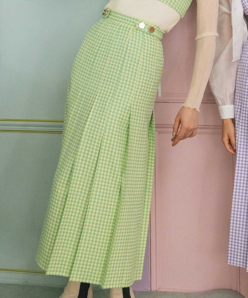 【TGC 和歌山 2023 佐々木久美さん(日向坂46)着用商品】 春らしいギンガムチェックのプリーツロングスカート 華やかなカラー展開のスカートで春コーデの主役級アイテム。 ギンガムチェック×プリーツスカートで女性らしさ◎ シルエットがきれいなプリーツスカートなので単品使いでも活躍します。 【styling】 ギンガムチェックバックレースビスチェとセットで着用するとこれだけで春コーデの完成。 スカートが目立つようにシンプルなトップスと合わせるのがおすすめです。 春アウターとの相性も抜群なのでコーディネートの幅も広がります。 -------------------------- 透け感:なし 裏地:あり 伸縮性:なし 生地の厚さ:普通 --------------------------- S:(01):総丈83cm ウエストゴム上り63cm ヒップ93cm M:(02):総丈88cm ウエストゴム上り66cm ヒップ96cm