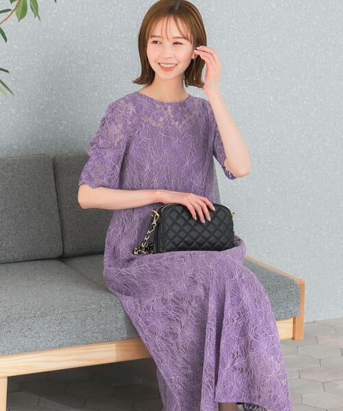 【配色レースが魅力のデザインワンピース】kaene定番のエプロンデザインをアレンジした、配色レースの生地が美しいワンピース袖にギャザーを入れ、より柔らかく女性らしい雰囲気に仕上げました。インナーワンピースは、柔らかく落ち感も良いジョーゼット生地を使用。バックフロントからインナーのカラーがあえて見えるようにデザインしており、レースとの配色もポイントです。レースの華やかさと落ち着いた色味が、結婚式などのお呼ばれにはもちろん、特別な日におすすめです。※この商品は、ペチコートがつきます。※この商品は素材の特性上、寸法に多少のばらつきがございます。寸法については留意した設定になっておりますので、ご了承ください。※その他お取り扱いに関しましては、商品に付属のアテンションタグをご覧ください。[ペチコート]36 : 肩幅26cm / 総丈約117cm / 前身頃106cm / 後身頃104cm / 身幅45cm / 長さ(スリット)17cm38 : 肩幅28cm / 総丈約118cm / 前身頃108cm / 後身頃105cm / 身幅46cm / 長さ(スリット)17cm※商品画像は、光の当たり具合やパソコンなどの閲覧環境により、実際の色味と異なって見える場合がございます。予めご了承ください。※商品の色味の目安は、商品単体の画像をご参照ください。素材感透け感 : あり(袖のみ)伸縮性 : なし裏地 : なし光沢 : なしポケット : なし3638