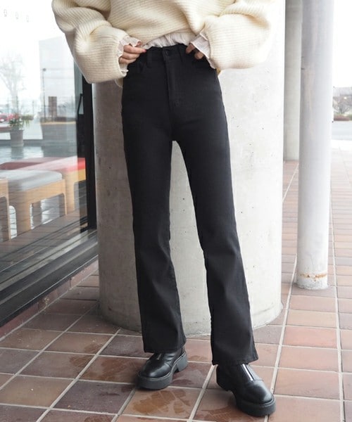 すっきりとしたシルエットで万能に合わせやすいハイウエストデニム。ウエストにゴムが入っていて、全体的にもストレッチが効いているので快適な履き心地です◎ スニーカーやローファー、ブーツなどシューズを選ばないのも嬉しいポイントです。