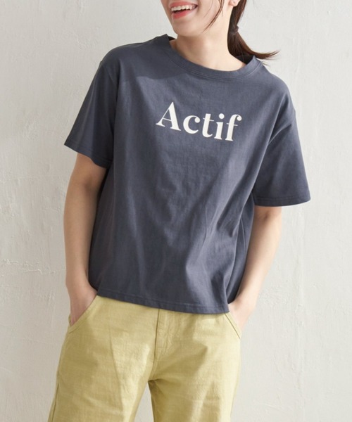 カジュアルすぎない、上品なフランス語のロゴTシャツ。一枚でもインナー使いでも活躍します。【素材】綿100%の安心素材。【デザイン】大きすぎないベーシックプリントTシャツ。Actif・・・フランス語で活発な、行動的なという意味。【ポイント】大き目レターロゴで、あえてのベーシックカラー展開のみのこなれTシャツ。今年はベージュが新色!