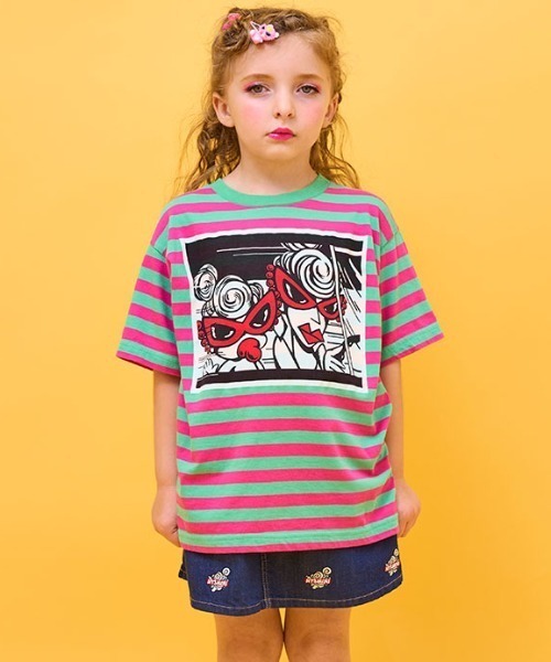 MINIちゃんとMAMAのドライブシーンがコーディネートの中でもヘビロテで使えるボーダーTシャツになりました☆スタンダードなブラック×ホワイトはもちろんですが、ビビットなエメラルドグリーン×ピンクもお洒落キッズ必見!バックプリントには全て順調ALL IS WELLとポジティブなメッセージが込められています♪