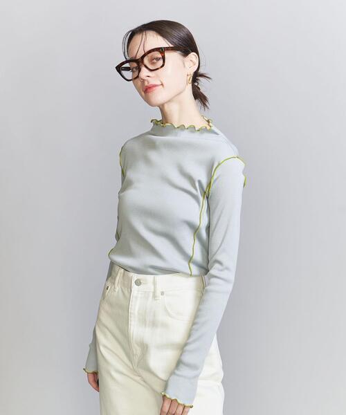 着映えと着回しを両立 春の万能メローステッチカットソー■デザイン人気のメローステッチカットソーがリニューアルして登場。ハイネックから、より着回しの効くモックネックにアップデートしました。ネック、袖口、裾回りに加え、前後の身頃にも配色のステッチを施し、一枚で存在感のあるデザインに。肌馴染みの良いオフホワイトとモード感漂うブラックに加え、トレンドのライトブルーをご用意しました。■素材上品な光沢と適度な肉感、さらっとした肌触りが特徴のポリエステルコットンを使用。さりげないニュアンス感を演出してくれる凹凸のあるテレコ素材は、着心地の良さと着映えを両立してくれます。■コーディネートベストやジャンパースカートのインナーとしてはもちろん、配色ステッチが存在感を発揮し、一枚着としても大活躍。シーンやテイストを問わず着用できるアイテムは、色違いで揃えるのもおすすめです。#春服============================裏地:なし透け感:ややあり伸縮:ややあり光沢感:ややあり============================【注意事項】※商品を使用前に、タグ等に記載されている「取り扱い上の注意書き」、「洗濯表示」を必ずご確認ください。※商品画像は、光の当たり具合やパソコンなどの閲覧環境により、実際の色味と異なって見える場合がございます。あらかじめご了承ください。※商品の色味の目安は、商品単体の画像をご参照ください。店舗へお問い合わせの際は、全国のBEAUTY & YOUTH各店舗まで下記の品名/品番をお申し付けください。品名:BL C/E TRC MELLOW M/N 品番:16122255127